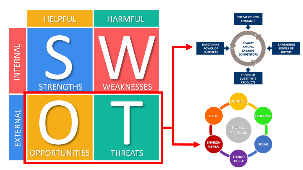 • Competitor Analysis – studying the strengths and weaknesses of rival businesses.